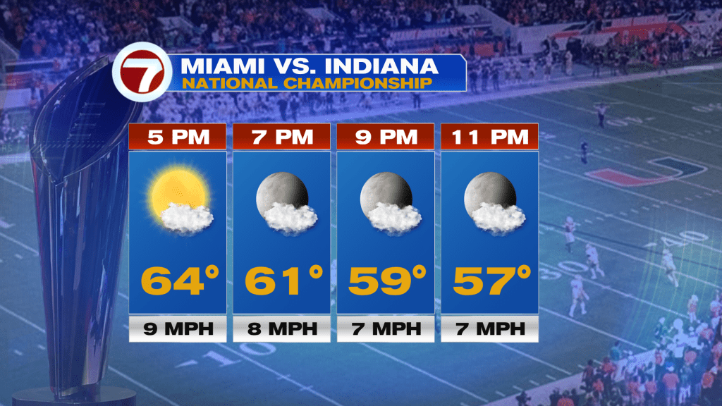 That cold front brings in another drop in temperatures for early next week, making for perfect football weather for the National Championship Monday evening.