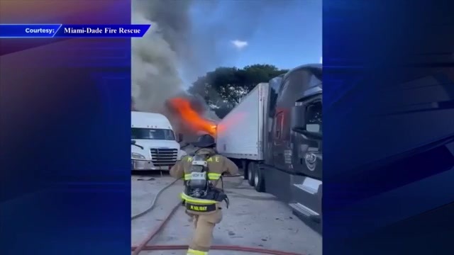 Video recorded by Miami-Dade Fire Rescye captured the vehicle engulfed in flames at a truckyard along the near Northwest 132nd Street and 42nd Avenue, Sunday afternoon.