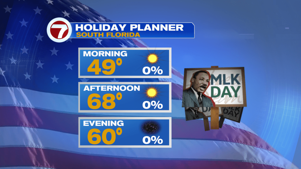 Therefore for Monday, which is Martin Luther King Jr. Day, expect a chilly start once again with widespread lows in the upper 40s to low 50s followed by highs in the upper 60s That will be paired with sunny skies, making for a beautiful day.